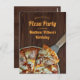 Convites de festa de pizza de aniversário com fundo de madeira rústica, foto de pizza e espaço para adicionar a idade de aniversário, se desejar. Todas as seções do texto podem ser personalizadas com modelos. Perfeito para uma festa de aniversário de criança, adolescente ou adulto. * Se você quiser que a Zazzle imprima os nomes e endereços para você, basta digitá-los no modelo e adicionar os cartões ao carrinho um por um. Se preferir escrever os endereços à mão, basta excluir o endereço de exemplo.