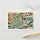 Um mapa de cartão postal antigo do estado de Maine reaproveitado em um novo cartão postal.