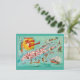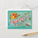 Um colorido mapa postal de Long Island, Nova York, reaproveitado em um novo cartão postal.