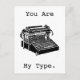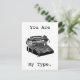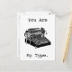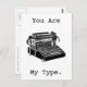 Este cartão postal excêntrico e inspirado no vintage apresenta uma ilustração em preto e branco de uma máquina de escrever de 1906. O cartão está escrito "Você é Meu Tipo", mas você pode facilmente alterar o texto para dizer o que quiser. Perfeito para escritores, secretários e qualquer pessoa que passe muito tempo digitando!
