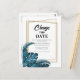 Cartão postal de mudança de data com vegetação azul-marinho. Cartão postal de mudança de data com folhas azuis.