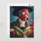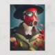 Cartão postal de mulher com máscara de gás vermelh