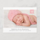 Este cartão postal de anúncio de nascimento moderno, mas tradicional, facilita o compartilhamento de suas novas e interessantes notícias sobre bebês com entes queridos! Personalize o cartão-postal, adicionando a sua foto favorita à frente, personalize o monograma rosa e branco e adicione o nome do seu recém-nascido e os detalhes de nascimento. No verso, você pode escrever uma mensagem pessoal para os destinatários.