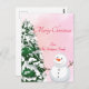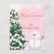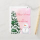 CARTÃO POSTAL PINK WATERCOLOR DE NATAL COM CHRITMAS TREE E SNOWMAN