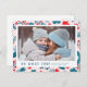 Padrão floral Escandinavo bonito, de cor azul, vermelha e rosa esbranquiçado. Adicione a sua própria fotografia e mensagem personalizada às costas para um cartão postal de fotos de Natal personalizado e único!