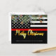 Enviem saudações de Feliz Natal a amigos, família, colegas bombeiros e à sua comunidade com este Cartão de Feliz Natal Thin Red Fire - Bandeira Americana em cores de bandeiras de bombeiros, preto moderno e vermelho com folhas e bagas ocas e um roteiro elegante de ouro. Personalize com sua mensagem e seu nome de família ou departamento de bombeiros. Estes cartões de Natal para bombeiros são perfeitos para famílias de bombeiros, assim como para bombeiros. COPYRIGHT © 2020 Judy Burrows, Black Dog Art - Todos Os Direitos Reservados. Cartão-postal de Natal Merry para Bombeiros de Orçamento