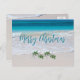Saudação de Natal tropical, cartão postal de barato. Personalize todo o texto com a areia do oceano e da praia como a imagem de fundo. Economize dinheiro com este tipo de cartão.