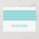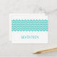 Cartão Postal de Número de Mesa com Chevron Simples moderno e elegante, apresentando uma borda com padrão de chevron sofisticado e estiloso em turquesa. Este cartão de mesa simples, porém ousado, é perfeito para adornar as mesas de recepção em seu casamento muito moderno e contemporâneo. Fácil de personalizar, basta adicionar o(s) número(s) de mesa apropriado(s) no campo de texto fornecido. Clique em "Personalizar" para encontrar opções adicionais de personalização.