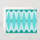 Este Cartão postal de Ouros Geométricos e Starbursts tem todo o encanto da cozinha de algo que é gatinho e encantador. A design inspirada na safra apresenta um fundo azul-pavão mod com azul-claro, hexágonos alongados, em camadas com diamantes-tartaruga, e estrelas azuis de pavão. É um caleidoscópio de retro-bondade! Este design do estilo Palm Primavera de 1950 e 1960 parece que seria igualmente em casa com uma placa moderna de meio século ou na casa da sua família de televisão clássica favorita.