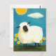 Cartão postal fofo para amantes de animais com uma pintura digital de Lisa Marie Robinson. Uma ovelha branca fofa está entre flores amarelas. O sol brilha acima e há uma nuvem solitária no céu. Direitos autorais © Lisa Marie Robinson. Todos os Direitos Reservados. É ilegal usar ou duplicar esta, ou qualquer uma de nossas imagens, sem permissão por escrito.