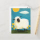 Cartão Postal de Ovelhas Fofas e Flores Amarelas