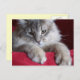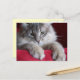 Sonolento e doce. Levantar o gato tem uma pose de querido neste cartão postal