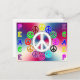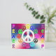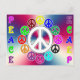 retrô colorido parece cartão de paz com muitos sinais de paz menores coloridos ao redor de um branco maior, colecionado pela palavra paz escrita verticalmente para baixo e para cima