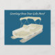 Passando suas férias a bordo do seu barco de pontoon? Envie seus cartões postais personalizados para a família e amigos. Estes cartões postais apresentam uma ilustração de um barco de pontoon em tons de bronzeado e creme contra um fundo azul marinho com a sua própria saudação no topo em letra de script. O vazio está pronto para sua própria mensagem manuscrita ou uma mensagem ou ilustração impressa personalizada.