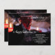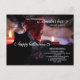 Cartão postal de receita com um coquetel iluminado por uma vela com gato preto, aranha e chapéu de bruxa. Ótimo para uma celebração de Halloween.