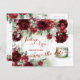 O conjunto definitivo de convite de casamento com aquarela floral. Uma garrafa vintage de sumptuosas peônias vermelhas profundas, entre frondes prateadas de verde de aquarela e borrifos de arte floral delicada. Adicionar um fundo de papel kraft pode dar um visual rústico vintage a este convite.