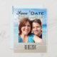 Cartão postal de salvar a data com a sua própria foto emoldurada por uma pintura de uma praia. Ótimo para um casamento na praia, casamento de destino ou cruzeiro ou um casamento com tema náutico.