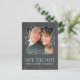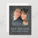 Elegante e doce Cartão postal de Salve a Data com Foto de Lousa com Espirais com uma moldura de floreio espiral em azul claro e um fundo com aparência de lousa moderna. Fácil de personalizar, basta substituir a foto por uma sua e adicionar os detalhes do seu casamento. Clique em "Personalizar" para encontrar mais opções de personalização e ajustar sua foto, se necessário.