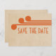 Cartão postal de Salve a Data moderno e sofisticado Deco Chic em laranja escuro, apresentando um par de enfeites de círculo art déco elegantes e um fundo de arte digital com textura de papel falso. Este cartão postal de Salve a Data é perfeito para anunciar o seu casamento elegante. Fácil de personalizar, basta adicionar os detalhes do seu casamento nos espaços fornecidos. Clique em "Personalize" para encontrar opções adicionais de personalização.