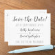Um cartão postal de Save the Date com um design simples e limpo em cinza prata e branco com texto claro. Cartões postais Save the Date.