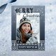 Um modelo de cartão postal de foto de suéter feio com Feliz Natal e votos de um Feliz Ano Novo. O design mostra um padrão azul marinho com luzes de flocos de neve cintilantes. Ótimo para uso pessoal e também para fins corporativos para dizer Obrigado aos clientes.
