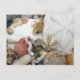 Cartaz de fotografia de concha marítima. Imagens de conchas bonito, como o dólar de areia de biscoitos do mar, relógio de sol, ouriço-do-mar, cascas de berbigão cor-de-rosa e laranja, caracóis de verme encaracolado e outros cobrir da vida marinha na frente. O inverso é vazio de usar em qualquer ocasião, ou enviar de férias de praia tropical.