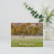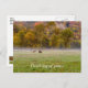 Cartão postal com um casal de veados pastando em um campo numa fria manhã de outono com alguma névoa. O grande veado macho come grama enquanto a fêmea observa. Isso é no Vale de Boxley, Arkansas, EUA.