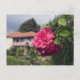 Rosa e casa, cartão postal rústico.