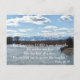 Montanhas com neve realçam este cartão postal de versículo bíblico cristão do Salmo 46:10. Este é um cartão postal perfeito para encorajar seus amigos a confiar no Senhor. As belas montanhas com neve estão na frente e há muito espaço para você escrever uma mensagem pessoal no verso.