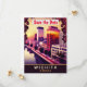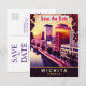Convite de casamento para salvar a data de Wichita, cartão postal de viagem. Pôr do sol em laranja, cores vibrantes.