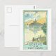 Este cartão postal é uma reprodução de uma poster de viagens vintage para Genebra na Suiça.