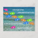 De volta à escola, cartões postais de peixe-palhaço. Nadar peixe na frente com quatro linhas de texto personalizado para adicionar lembretes e/ou informações para estudantes e pais. Exemplo: horário de início da escola, o que trazer, número da sala de aula. Inclua uma foto e uma nota do professor nas costas.