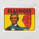 Cartaz de imagem decal do Estado de Illinois com um mapa do Estado de Illinois e uma ilustração de Abraham Lincoln. Cor retrorreflectora vibrante.