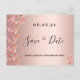 Uma elegante e simples Salve o cartão Data para uma 100ª festa de aniversário. Um fundo rosa de cor chic, cor-de-rosa decorado e florais botânicos de cor rosa, de cor-de-rosa. Modelos para uma data e nome/idade 100. Letras pretas coloridas. O texto: Salvar a Data é gravado com um script de estilo com letra de tendência grande. Dica: Se você não quiser que pareça um cartão postal, clique em personalizar, vá para o verso e remova o divisor e o carimbo de posto.