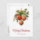 Cartão postal de Natal com uma ilustração de estilo vintage. Três bolhas de Natal vermelhas cercadas por sagrado verde e bagas. Legal.