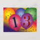 Balões coloridos de vermelho, laranja, verde, roxo e azul decoram esta design 13. Brilhe suas decorações de festa de aniversário de 13 com esses balões divertidos do Perfect Postage