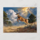 Uma pintura dinâmica de um galo de cervo de cauda branca saltando por uma paisagem cênica, perfeita para entusiastas da vida selvagem.