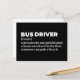 Definição engraçada de driver de barramento Este cartão postal de definição engraçada de driver de barramento é perfeito para os motoristas que trabalham duro que fazem de cada rota uma aventura. Um presente de apreço humorístico para operadores de ônibus urbanos, motoristas de ônibus escolares e heróis de trânsito público. Excelente de aposentadoria, ou risadas no escritório. Perfeito para cartões postais de motorista de ônibus engraçados e presentes de transporte.