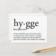 Informe a todos o que "Higiene" significa com um produto simples, mas na moda, com a definição de dicionário tipograficamente projetada. A palavra 'gema' vem de uma palavra dinamarquesa que significa 'bem-estar'. Mas também especula-se que a hipertensão possa ter origem na palavra abraço, que significa "abraçar". Um momento calmo e confortável com pessoas que você ama. Uma completa ausência de frustração, ou qualquer coisa emocionalmente esmagadora, muitas vezes apreciada com boas comidas e bebidas, cobertores quentes e luz de velas.