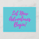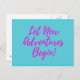 Deixem que novas aventuras comecem com cartão postal - fundo azul com letras cor-de-rosa.