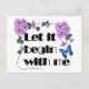 Cartão Postal Deixe Começar Comigo Dizendo Flores Borboleta