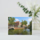 Desvio, canal, ponte e casas antigas, com reflexões na água