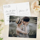 Na moda salve a data do cartão postal com sua foto de noivado favorita com Salvar a data em uma camada de caracteres elegante do script calliografia. Personalize esses anúncios de data com seus nomes, data de casamento e a cidade/estado do seu local de casamento. O lado inverso do cartão postal de data save oferece espaço para seu endereço de devolução e detalhes do casamento. Perfeito para compartilhar sua foto de noivado e informações importantes de casamento com a família e amigos.