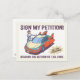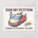 Anúncio falso do carro retrô: "Assine minha petição! Exija o retorno das barbatanas de cauda! Chame seu congressista!" Texto com imagem de um carro estilo atual com barbatanas de cauda e modelo futurista. T-shirts, embuste de presente novidade.