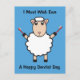 Uma design de um dentista engraçado de uma ovelha segurando dois pincéis de dente em um fundo azul. O texto diz, "Eu Devo Desejar Olhos" e "Um Feliz Dia de Dentista". Todo o texto pode ser alterado e personalizado para ajustado das suas necessidades.