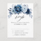 Cartão-postal Elegante azul/Marinho RSVP com buquê elegante de azul Dusty, Marinho, botões de flores rosa e folhas de eucalipto azuis. Entre em contato comigo para obter ajuda sobre a personalização ou se você precisar de outro produto com este design.