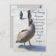 Um pombo e um pelicano. Pelican observando o pombo ir embora. Cartão de excelente para " Desculpe, Perdoe-me, Missing You, Safe Viagem.