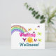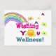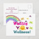 Alegrar o dia de alguém com este lindo cartão postal de Melhoras! Com um design alegre na frente com flores e borboletas em arco-íris e as palavras "Desejando-lhe Bem-Estar ", traz calor e positividade. O verso inclui uma mensagem sincera e espaço para o endereço do destinatário.