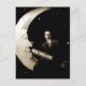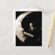 C. Fotografia vintage de 1910, mostrando um jovem sentado em uma lua de papel e segurando um cartaz que dizia "Queria ter uma garota".