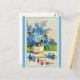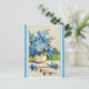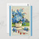 Qualquer pessoa adoraria receber este cartão postal de desejos de aniversário floral antigo com uma ilustração retrô feminina e bonita de flores azuis!
